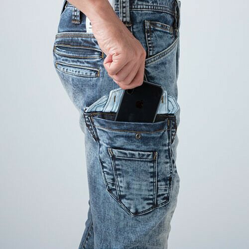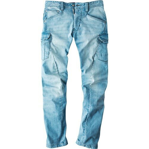 着用すれば違いが分かる。ストレッチデニム、前人未到の領域へ スリムにシェイプされた人気の細身シルエット。両胸のポケットはボタン付きフラップ、ウェストの大型ポケットは大開口のファスナー仕様。どちらもデザインを損なわずに収納性と内容物が落下しにくいように工夫されている。ボディ・アームともにスリムシェイプされた細身シルエット。両レッグサイドのカーゴポケットはファスナーを、ヒップのバックポケットはボタン付きフラップを、それぞれ物が落ちにくいように設計されている。