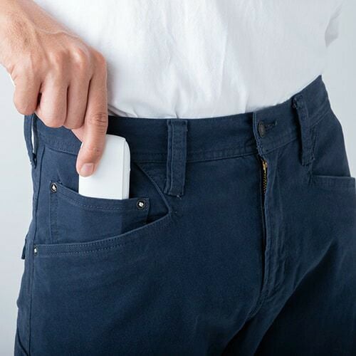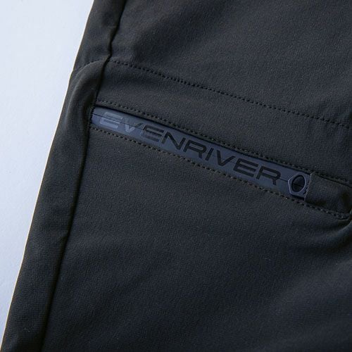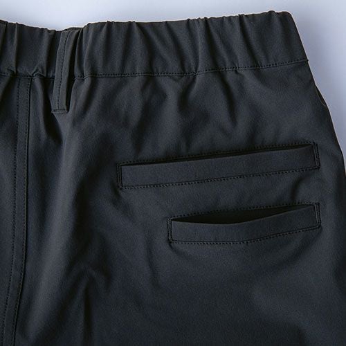 瞬時に伸び、最速で形状を復帰させる ボディ・アームともにスリムシェイプされた細身シルエット。両レッグサイドのカーゴポケットはファスナーを、ヒップのバックポケットはボタン付きフラップを、それぞれ物が落ちにくいように設計されている。