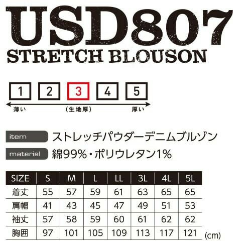 作業服 デニム イーブンリバー EVENRIVER ストレッチパウダーデニムブルゾン USD807 作業着 通年 秋冬作業着 作業服 デニムジャケット 通年 上着 デニム作業服 デニム作業着 ブルゾン ジャケット ワークウェア 仕事 土木 工事 現場