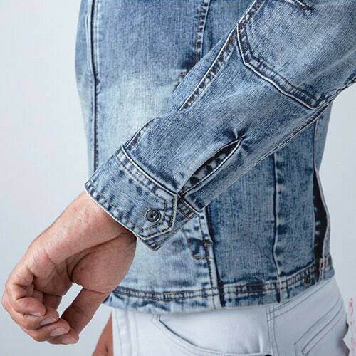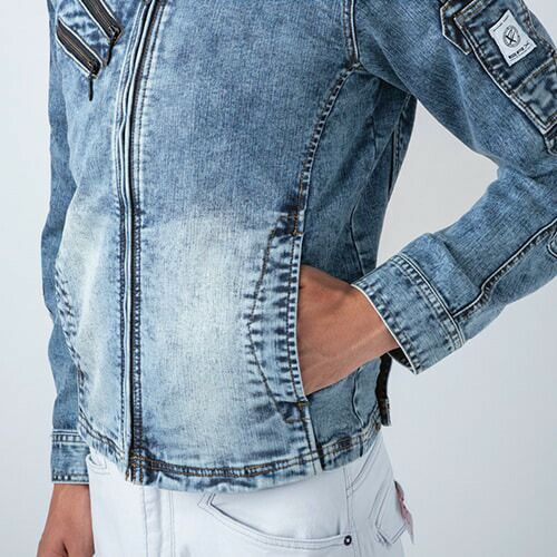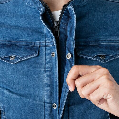 進化する3Dストレッチデニムの極致 USDストレッチデニムシリーズの代名詞である独創的なデザインニングのダブルファスナー仕様。消耗しやすいひじ部分は生地を2重に合わせた「ダブルエルボー」仕様で、機能性とデザインインパクトを両立させている。背面には腕の伸び感をワンランクアップさせる「アクティベートガゼット」を搭載。