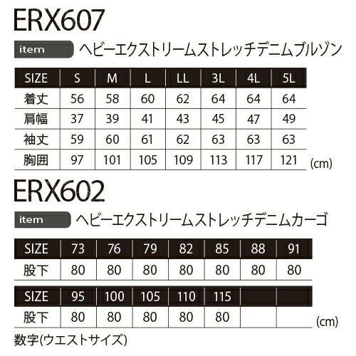 作業服 上下セット ストレッチ デニム メンズ レディース ズボン 作業着 イーブンリバー EVENRIVER ERX607 ヘビーエクストリームストレッチデニム上下セット(長袖ブルゾン+カーゴパンツ) 上着 ジャンパー ジャケット 通年 秋冬