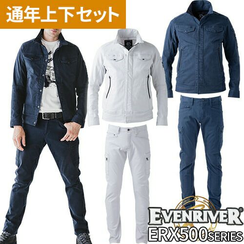 作業服 上下セット 秋冬 ストレッチ 作業着 イーブンリバー EVENRIVER ERX507 ERX502 パンツ ジャケット メンズ レディース AW 長袖 カーゴパンツ ジャンパー ズボン 大きいサイズ 人気 おしゃれ かっこいい ユニフォーム