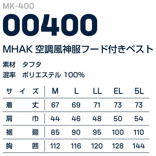 他の画像を見る EFウェア ベスト 大川被服 MHAK 空調風神服フード付きベスト 00400 2023年モデル MK-400 作業着 作業服 春夏 春夏 猛暑 猛暑 熱中症 暑さ対策 涼しい 電動ファン 扇風機 UVカット フード付 保冷剤用ポケット カジュアル アウトドア キャンプ 釣り スポーツ観戦 特別価格 ¥ 6,402 税込 ペインター/アーティストMHAK氏とのコラボウェア 「空調風神服」とは服に付いた小型ファンで服の中に外気を取り入れ、体の表面に大量の風を流すことにより汗を気化させて涼しく快適にすごしていただくための商品です。工場や屋外作業などエアコンの使用できないような環境でも快適にすごしていただけるようになります。また、ご家庭やアウトドア、レジャーなど幅広くご使用いただけます。 詳細を見る お気に入りに登録する