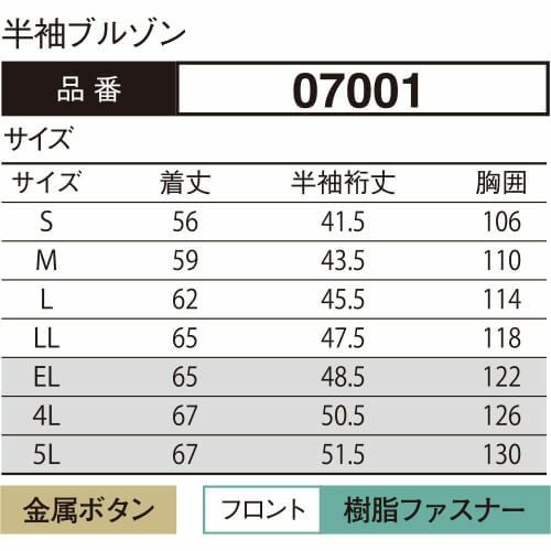 他の画像を見る 作業服 ブルゾン 大川被服 DAIRIKI ダイリキ 半袖ブルゾン 07001 作業着 春夏 特別価格 ¥ 5,570 税込 〜 特別価格 ¥ 税込 実績NO.1軽くて通気性にすぐれた夏のロングラン商品 DAIRIKIが誇る技術のすべてを結集して作ったMAXシリーズの夏バージョンです紳士服をベースとしたデザインは、どこかシックで高級感があり、颯爽とした印象素材も清涼感のあるトロピカルを使用し、軽くて通気性にすぐれた最高の仕上がりになっていますまた姉妹ブランドの『V-MAXシリーズ』とは同色展開となっているため、コーディネイトも可能文句なしのロングヒット商品で、ハードワークの現場はもちろん、学校納品でも数多くの実績がある商品です〔東レ 素材使用〕 詳細を見る お気に入りに登録する