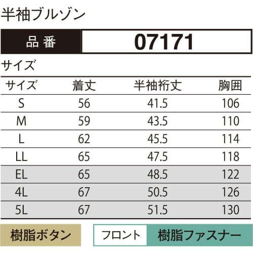 他の画像を見る 作業服 ブルゾン 大川被服 DAIRIKI ダイリキ 半袖ブルゾン 07171 作業着 春夏 特別価格 ¥ 6,303 税込 〜 特別価格 ¥ 税込 いち早く採用した立体裁断で、先進の動きやすさを実現した先駆的ウェア。 タックが動きやすさを追求する唯一の手法だった時代に、早くから立体裁断を採用フラットでありながら動きにマッチした自然なゆとりと、すっきりとしたシルエットで動きやすさを実現した先駆的商品「737」の夏バージョン涼感タッチ「トロピカル素材」糸と糸の隙間で作る抜群の通気性が、涼しく爽やかな着心地を実現適度なシャリ感もある、涼感タッチの人気素材丸洗いしても型くずれせず、美しいシルエットをキープ〔東レ 日本製素材使用〕 詳細を見る お気に入りに登録する