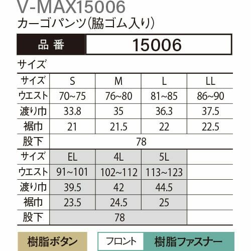 他の画像を見る 作業服 カーゴパンツ 大川被服 DAIRIKI ダイリキ V-MAX15006 カーゴパンツ(脇ゴム入り) 15006 作業着 通年 秋冬 おしゃれ かっこいい 人気 ズボン 作業ズボン 作業パンツ 作業 工事 土木 塗装 DIY diy 特別価格 ¥ 5,290 税込 〜 特別価格 ¥ 税込 作業服は強くて当たり前 ハードワーカーに着用していただきたい、ユニフォーム業界で一番強い服を目指して商品化一般的な使用頻度のユーザー様には、長く着用していただけます 詳細を見る お気に入りに登録する