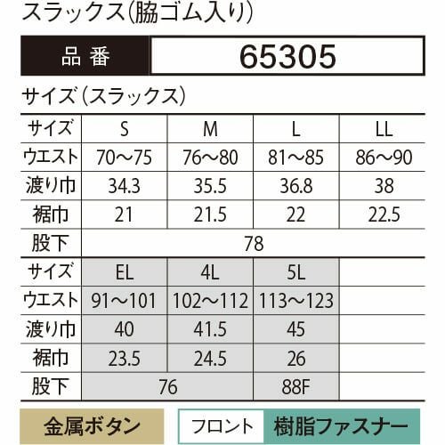 他の画像を見る 作業服 パンツ スラックス 大川被服 DAIRIKI ダイリキ スラックス(脇ゴム入り) 05005 作業着 通年 秋冬 作業ズボン 作業パンツ ワークパンツ ズボン おしゃれ かっこいい オフィス ユニホーム 作業 軽作業 外作業 工場 現場 特別価格 ¥ 4,500 税込 〜 特別価格 ¥ 税込 全ての技術とノウハウを結集した、実績No.1商品 紳士服をベースにつくられた、シックで高級感のあるデザイン素材は生地厚のあるポリエステルで、しっかりとして光沢があり、最高の仕上がりですハードワークの現場はもちろん、学校納品でも数多くの実績がある商品です 詳細を見る お気に入りに登録する