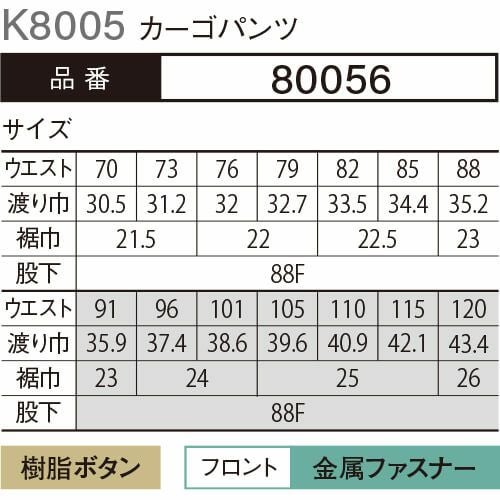 他の画像を見る 作業服 カーゴパンツ 大川被服 kansai uniform カンサイユニフォーム K8005 80056 作業着 通年 秋冬 おしゃれ かっこいい 人気 ズボン 作業ズボン 作業パンツ 作業 工事 土木 塗装 DIY diy 特別価格 ¥ 5,300 税込 〜 特別価格 ¥ 税込 プロのワークシーンに元気と情熱を発信 JIS-T-8118適合(クラレトレーディング・日本製素材使用) 詳細を見る お気に入りに登録する