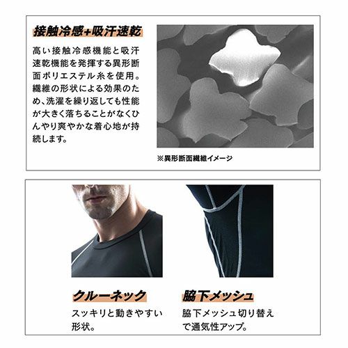 腕周りをスッキリ動きやすく、スピード消臭でさわやか快適、吸汗速乾に加え両脇メッシュでさらさらクール!