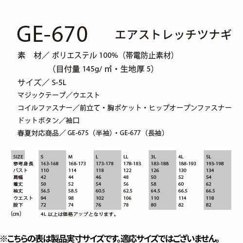 他の画像を見る エアストレッチツナギ つなぎ ツナギ GE-670 エスケープロダクト 作業着 通年 秋冬 オーバーオール 長袖 メンズ レディース 男性 女性 ツナギ服 続服 腰割れ アウトドア 釣り キャンプ DIY diy おしゃれ かっこいい かわいい 可愛い 特別価格 ¥ 9,240 税込 〜 特別価格 ¥ 税込 空気の様に軽やかなストレッチツナギ 縦横どちらにもストレッチする軽量生地に加え、ツナギで一番のストレスであるトイレ問題も“特許取得のヒップオープン機能”でクリア。ファスナー付きポケットにスマホ用ポケット、そして表面にボタンやファスナーが出ていないプロスペック。まさにストレスフリーなツナギです。 詳細を見る お気に入りに登録する