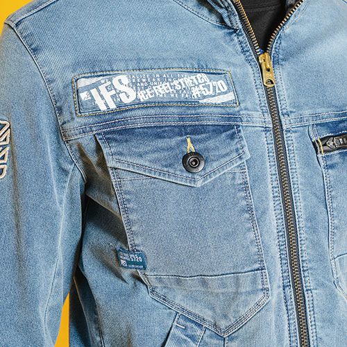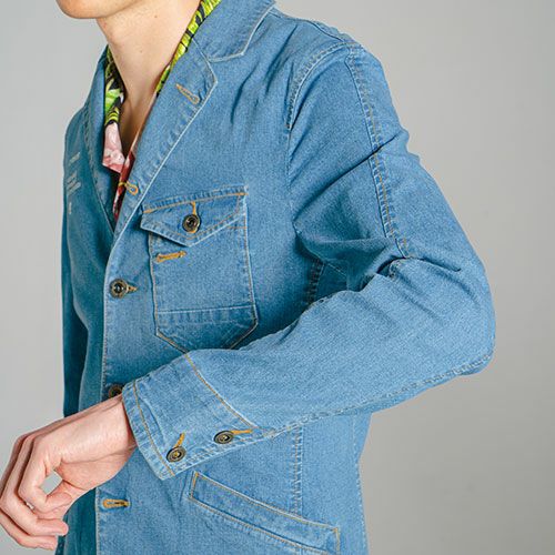 他の画像を見る アイズフロンティア ジャケット デニム 超消臭ストレッチデニムテーラードジャケット #50010P 作業服 作業着 春夏 I'Z FRONTIER 軽量 薄手 ストレッチ テーラー スーツ イージーケア スタイリッシュ 動きやすい カッコいい カジュアル 快適 特別価格 ¥ 1,990 税込 テーラードスーツの新たなる世界観。多様性の世界に既定概念は不要 ・発汗が避けられない猛暑シーズン対応の瞬間消臭ワークスーツ。汗のにおいを気にせず快適な活動を実現します。・ハイクオリティな超消臭繊維を使用し、4代悪臭であるアンモニア、酢酸,イソ吉草酸、トリメチルアミンに対して高い瞬間消臭効果を発揮します。第三者研究機関での消臭試験結果ではアンモニア減少率99%、酢酸減少率97%、イソ吉草酸99%と高い消臭効果を計測、短時間で大容量の臭い物質を無臭化します。・中和反応を利用して瞬間的に無臭化する「化学的消臭法」により、臭いを閉じ込めたり、別の香りをかぶせたりするような消臭法との差別化を図ります。・原料の段階で消臭機能を化学結合、洗濯や摩擦による機能低下はほとんど無く、半永久的に機能維持します。洗濯や日干しにより消臭効果が復元します。・猛暑シーズン対応を考慮し限界まで薄くした素材を採用。しかしながら一般基準約2.5倍の引裂き強さ(ヨコ方向)を有し、ワークシーンにも耐えうる強度を実現しました。・伸長率(ヨコ方向)約31%、伸長回復率(1時間後)ヨコ約86%により適度なストレッチ性能を発揮します。猛暑シーズンの動き易さをサポートします。・ストレッチデニム素材ならではの、高いイージーメンテナンスも魅力。無論、家庭洗濯も問題なし!テレワークにも最適です。・従来のスーツでは類を見ないポップなルックス。オン・オフ問わず様々なシーンに対応するカジュアル感が大きな魅力。全パーツに抜染プリントを施した99番色の存在感は圧巻の一言です。・あえてメイン釦には国産YKKの金属製アイズオリジナルタック釦を使用し更なるデザイン性を追求し細部まで品質に拘っています。 詳細を見る お気に入りに登録する