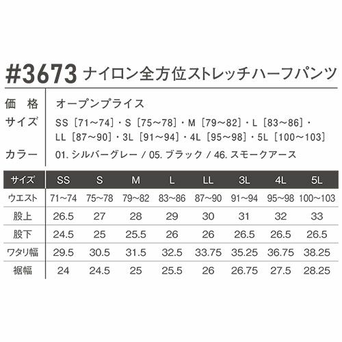 他の画像を見る アイズフロンティア ハーフパンツ ナイロン全方位ストレッチハーフパンツ #3673 作業服 作業着 春夏 I'Z FRONTIER 軽量 ドライ ストレッチ アウトドア スポーツ ストリート スタイリッシュ 動きやすい カッコいい カジュアル 快適 特別価格 ¥ 2,960 税込 ワールドクラスのハイマテリアルを惜しげもなく使用したナイロンワークウェアの最高峰モデル ・大好評を博した#3482(ジョガーパンツ)等と同素材を使用したセットアップワークウェアのニューモデルです・アウトドア、スポーツ、ストリートカジュアルの要素を絶妙なバランスで融合したアイズフロンティアならではのデザイン性の高い1着。パンツ単体ではファン付きウェアとの相性も抜群・素材は世界トップクラスのナイロン素材メーカーデリカシー社製を採用。高品質なフルダルナイロン糸を使用することにより、ハイブランドアウトドアウェアと同等の高級感を実現。淡色シルバーグレーも抜群の抜け防止効果を発揮します。・伸長率タテ方向に約50%、ヨコ方向に約32%、伸長回復率(1時間後)タテ94%,ヨコ89%を誇る驚異のストレッチ性能を発揮。抜群の動き易さを実現します。・一般強度をクリアした薄手素材を採用し、真夏のワークシーンに快適さをプラスします。・着用時やお洗濯後のシワも少なく、手間いらずのイージーメンテナンスも大きな魅力です。・ビスロンファスナー、ドット釦等は国産YKK社製を使用。細部にまで品質に拘っています。 詳細を見る お気に入りに登録する
