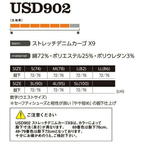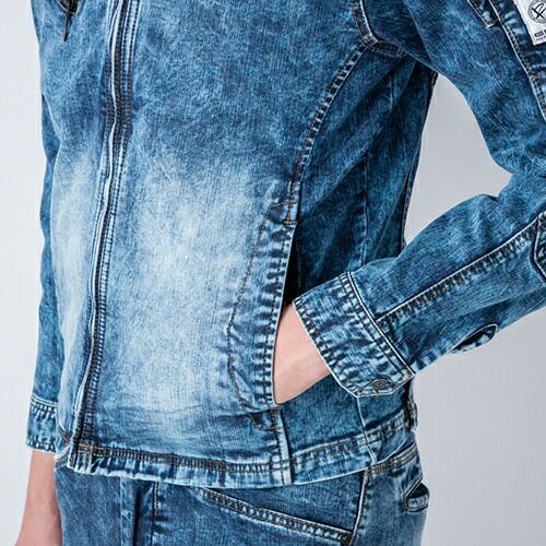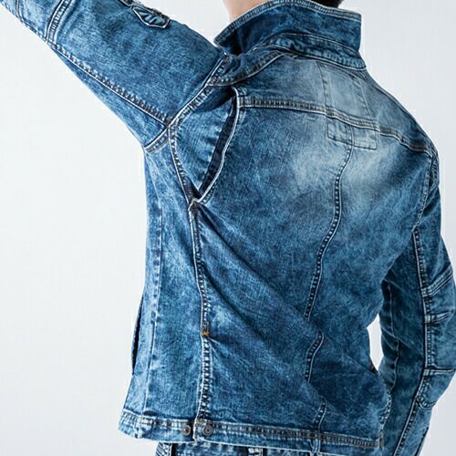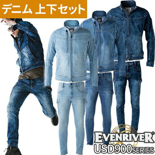 他の画像を見る 作業服 デニム 上下セット 作業着 ストレッチ 秋冬 イーブンリバー EVENRIVER USD907 USD902 デニムパンツ ズボン デニムジャケット ジャンパー デニム生地 メンズ レディース ブルゾン パンツ 新作 人気 おしゃれ かっこいい 特別価格 ¥ 10,690 税込 〜 特別価格 ¥ 税込 伸縮性能を強化したハイパワー糸使用ストレッチモデル 高機能のストレッチ糸を使用し、歴代USDストレッチデニムシリーズの中で最高レベルの伸縮率を実現。【ジャケット】右胸に配置された大容量大型ファスナーポケットで収納性が大幅にアップ。アーム廻りも程よいフィット感のすっきりシルエットに仕上げてあり、より洗練されたスタイリッシュシルエットへ。【パンツ】足回りがバタつかないスキニーフィットタイプながら、高い伸縮性・伸縮回復性で不快なつっぱり感や締め付け感を防止。セーフティシューズと相性が良い「やや短め」の股下仕上げ。 詳細を見る お気に入りに登録する