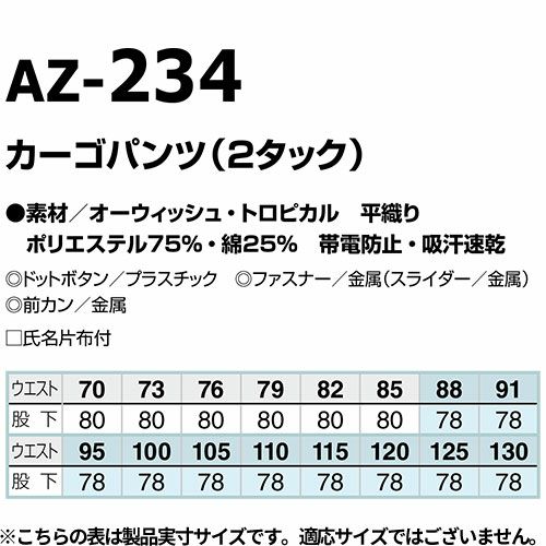 他の画像を見る アイトス AZ-234 カーゴパンツ(2タック ツータック) AITOZ 作業服 作業着 ポケット付き ボトムス パンツ ズボン メンズ レディース 男女兼用 春夏 ワークパンツ 帯電防止 吸汗 速乾 特別価格 ¥ 4,310 税込 〜 特別価格 ¥ 税込 吸汗速乾でお手入れラクラク。軽くて通気性抜群東レの清涼素材「オーウィッシュ」使用。 詳細を見る お気に入りに登録する
