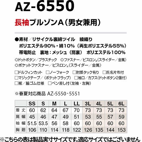 他の画像を見る 作業服 ブルゾン 作業着 レディース ジャケット 帯電防止 JIS規格適合 動きやすい ジャンパー 上着 女性用 長袖 通年 秋冬 アイトス AITOZ AZ-6326 おしゃれ 作業 ユニフォーム 庭 畑 仕事 大きいサイズ 13号 15号 17号 防寒着 防寒ジャケット 特別価格 ¥ 5,620 税込 〜 特別価格 ¥ 税込 動きやすさはそのままに、寸法や衿、ポケットの大きさなど細部にまでこだわった、働くモチベーションを上げる女性専用サイズのブルゾン。 詳細を見る お気に入りに登録する