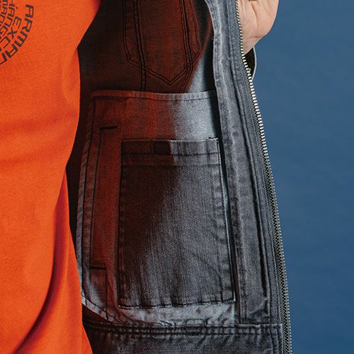 他の画像を見る 作業服 デニム アイズフロンティア I'Z FRONTIER 3Dストレッチデニムワークジャケット #7310 作業着 通年 秋冬 スタイリッシュ オシャレ カッコいい ハイスペック 高機能 カジュアル タウンユース 普段使い 動きやすい アウトドア スポーツ 特別価格 ¥ 6,897 税込 たどり着いた洗練を極めた世界観その研ぎ澄まされた機能美はワークシーンに新たなる品格を呼び起こす。アイズデニムチームウェアエディション満を持して登場! ・現代におけるスタイリッシュを再定義し生み出された最新シルエットを誇るストレッチデニムワークウェア。個人ユースのみならず、企業等のチームユニフォームとしてもその真価を遺憾なく発揮します。・しっかりとした質感の10オンスストレッチデニム素材を採用。14番&51番色は綿高混率で加工感強い王道のデニムルックスを表現。12番色は生地裏側を黒色にする事で非常に深みのあるリッチ感溢れるルックスを実現。・伸長率(ヨコ)約30%、伸長回復率(1時間後)約88%を有する快適なストレッチ性能。・素材のみならず、絶妙な3Dカッティングにより更なる動きやすさとスタイリッシュなルックスを両立。収納性も高く全ての面で高いパフォーマンスを発揮します。・その素材構造により一般基準比約5倍の脅威の引裂き強度を誇る高堅牢性モデル。・計算しつくされたワンポイントラバープリントを効果的に施しユーロテイスト漂う気品高いデザイン性を発揮。あらゆるシーンで強い存在感を発揮します。・新たなルックスを誇る希少性高い金属ファスナーや最新メッキを施したタック釦等、細部にまで拘りを追求しています。 詳細を見る お気に入りに登録する