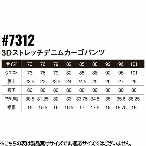他の画像を見る 作業服 デニム アイズフロンティア I'Z FRONTIER 3Dストレッチデニムカーゴパンツ #7312 作業着 通年 秋冬 スタイリッシュ オシャレ カッコいい ハイスペック 高機能 カジュアル タウンユース 普段使い 動きやすい アウトドア スポーツ 特別価格 ¥ 5,489 税込 たどり着いた洗練を極めた世界観その研ぎ澄まされた機能美はワークシーンに新たなる品格を呼び起こす。アイズデニムチームウェアエディション満を持して登場! ・現代におけるスタイリッシュを再定義し生み出された最新シルエットを誇るストレッチデニムワークウェア。個人ユースのみならず、企業等のチームユニフォームとしてもその真価を遺憾なく発揮します。・しっかりとした質感の10オンスストレッチデニム素材を採用。14番&51番色は綿高混率で加工感強い王道のデニムルックスを表現。12番色は生地裏側を黒色にする事で非常に深みのあるリッチ感溢れるルックスを実現。・伸長率(ヨコ)約30%、伸長回復率(1時間後)約88%を有する快適なストレッチ性能。・素材のみならず、絶妙な3Dカッティングにより更なる動きやすさとスタイリッシュなルックスを両立。収納性も高く全ての面で高いパフォーマンスを発揮します。・その素材構造により一般基準比約5倍の脅威の引裂き強度を誇る高堅牢性モデル。・計算しつくされたワンポイントラバープリントを効果的に施しユーロテイスト漂う気品高いデザイン性を発揮。あらゆるシーンで強い存在感を発揮します。・新たなルックスを誇る希少性高い金属ファスナーや最新メッキを施したタック釦等、細部にまで拘りを追求しています。 詳細を見る お気に入りに登録する