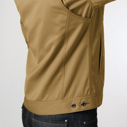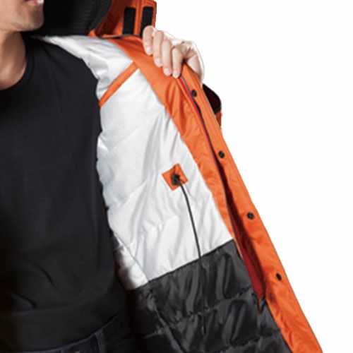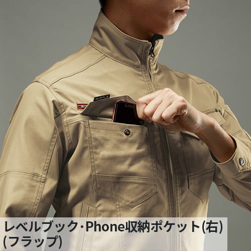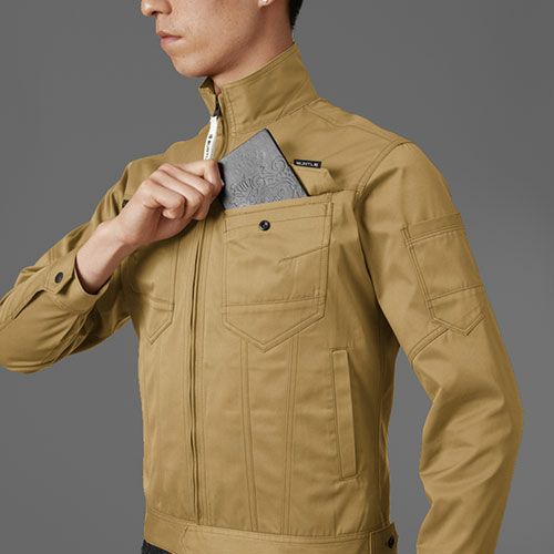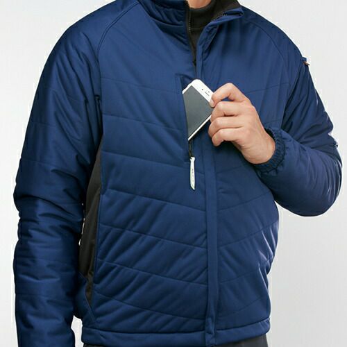 軽量ストレッチ×防風ラミネート素材が新次元の動きやすさと快適な着心地を実現!! 軽量・防風・保温設計(PUラミネートコーティング)やや細身のレイザーシルエット作業時の動作を快適に保つフリーストレッチ素材使用