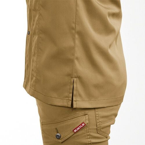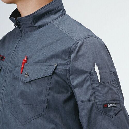 クレイジーストレッチがアメージングな着心地を実現! 伸縮性、形態回復性に優れた20%ストレッチ制電素材を採用し、ストレスフリーな着用感とイージーケアを実現した企業ユニフォームの定番プロダクト。シンプルなデザインと程よいテーパードなシルエットが洗練されたムードにセンスアップ。左胸フラップに施したバートルタグもさり気ないワンポイントアクセントに。