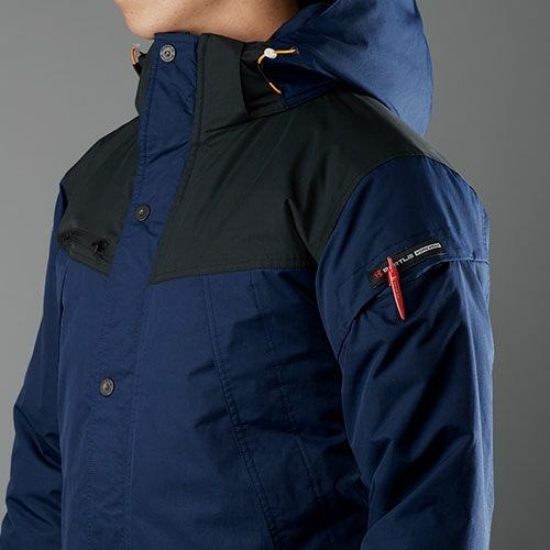 本格ワーク仕様の防水防寒マウンテンパーカーが新登場!プロワーカーからアウトドアファンまですべてのユーザーが納得するアイテム!! ・水の染み込みを抑える耐水圧10,000mm(DELTA DRY)・衣服内の水蒸気を外へ放出する透湿性8,000g/m2/24hrs(DELTA DRY)・生地の縫い目からの水の侵入を防ぐシームテープ・夜間の視認性を上げる反射材(リフレクター)を採用・男女ユニセックスシリーズ