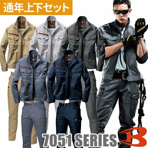 バートル 作業着 上下セット BURTLE 秋冬 ジャケット7051 + カーゴパンツ7052 ストレッチ 作業服 TC素材 セットアップ おしゃれ 人気 かっこいい おすすめ 制服 ユニフォーム 制電ケア 大きいサイズ 4L 5L ブルゾン ジャンパー ズボン メンズ レディース 男女兼用 建設業