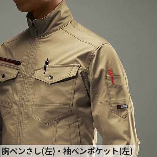 【リニューアル!!】ハードな動きに対応する快適スーパーストレッチ素材シリーズ!レッドファスナーがインパクトの進化したバートルの旗艦モデル!! ・伸縮性に優れたストレッチツイルを使用(伸長率15%)・やや細身でスタイリッシュなレイザーシルエット・男女ユニセックスシリーズ