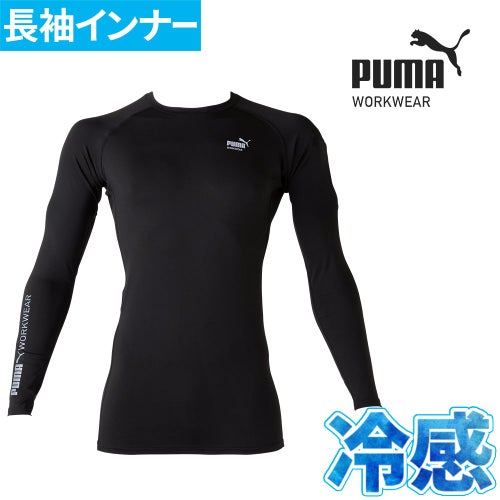 作業ウェア PUMA プーマ 長袖パフォーマンスウェア インナー メンズ 冷感 スポーツ 冷感インナー メンズインナー 夏 涼しい アンダーシャツ 黒 ストレッチ 長袖 夏用 熱中症対策 UVカット 自転車 作業着 作業服 PW-2040N 筋トレ ランニング 下着 ブラック