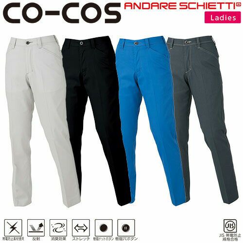 作業服 レディース パンツ コーコス信岡 CO-COS 消臭ストレッチレディースノータックスラックス(後ろシャーリング) A-2074 作業着 春夏作業着 作業服 レディース パンツ 春夏