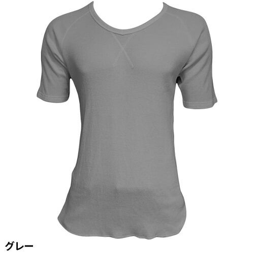 夏は快適に、冬は暖かくオールシーズン対応のサーマル生地使用。定番の丸首スタイル。 吸水性、通気性に優れ、保温効果にも優れます。凹凸部分が肌と程よい接点を生み、夏はサラサラと快適に、冬は空気の層の保温効果により暖かく、一年を通して着用できます。