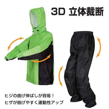 肘や膝の動きやすさを3D立体裁断で実現。また、背中の反射テープで夜間の視認性も高めています。