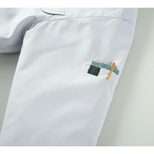 カラーはブルーを基調としており、作業着とは思えないほど非常にデザイン性の高い半袖シャツとなっています。左胸に異素材のファスナーポケットがついた、風合いのいいデニムニットの半袖Tシャツです。また、裾は絞れるようにドローコードが付いていますので、現場作業に応じて絞り込むことも可能です。