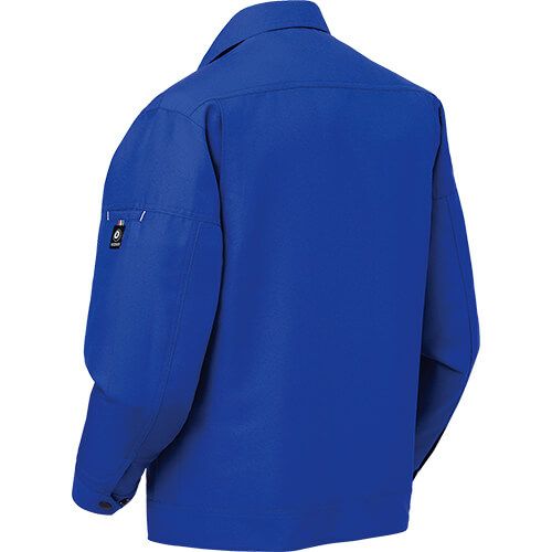 製品洗い加工を施した風合いのある超ストレッチデニムとなっています。伸縮性のあるストレッチ素材を使用しており、ジャンパーの袖内側・パンツの内股ギャザーで抜群の動き易さを実現していますので、激しい現場作業でも邪魔になりません。左袖にはマルチポケットがありますので、現場道具などを持ち歩くのにも大変便利となっています。