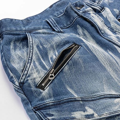 インディゴブルーのストレッチ素材を採用したストレスフリーの長袖ジャンパー インディゴはインディゴブルーのストレッチデニム素材を採用し個性際立つパッチワーク加工と皺加工でよりファッショナブルにインディゴブリーチはインディゴブルーのストレッチ素材を独自のブリーチ加工を施した趣のある風合いと個性が印象的ストレッチ素材で快適な履き心地を実現したカーゴパンツ
