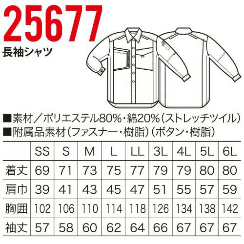 作業服 長袖シャツ クロダルマ 長袖シャツ 25680 作業着 春夏 リサイクル繊維 ストレッチ 軽量 男女兼用 静電気帯電防止
