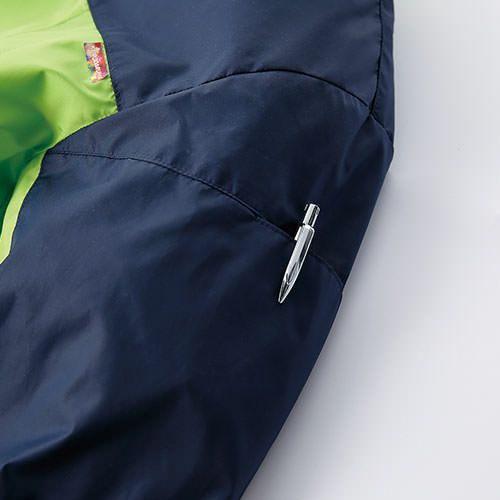 冬の厳しい風や雨から着る人を守る3層ボンディングとなっており、収縮性のあるストレッチ素材を採用しています。このストレッチジャンパーでは、背中の裾部分は反射プリントが貼りつけられているため、視認性を確保しづらい夜間作業時においても安全性を確保することができます。また、左袖にはペン差しがあるため筆記をする際に便利です。袖口ストレッチバインダーテープ・ハンドウォーマーポケット・裏地フリース素材など防寒対策も充実しています。