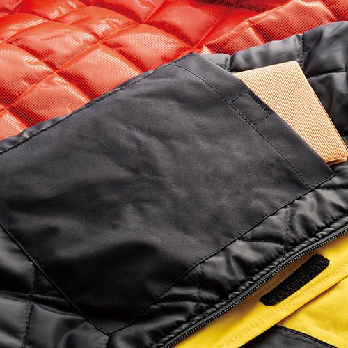 ヒーターシートを装着できる防寒ジャンパー 耐水圧5000mmの防水生地採用撥水性・防風性にも優れた防寒ジャンパー裏地にはアルミプリント加工を採用し保温性をキープ4cm幅の反射テープを前後に施し視認性をアップ
