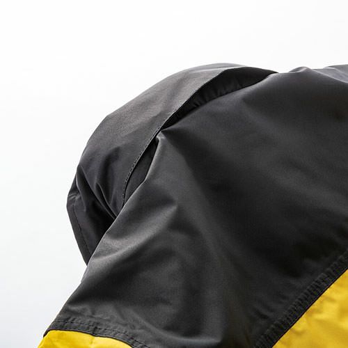 耐水圧5000mm、透湿性5000g/m2 24h(B-1法)の防水生地を使用優れた撥水性、防風性も発揮ストレッチ素材、ストレッチリブ採用でストレスフリーの着心地を実現