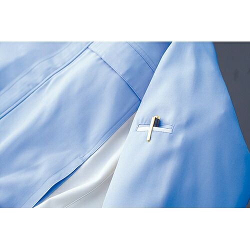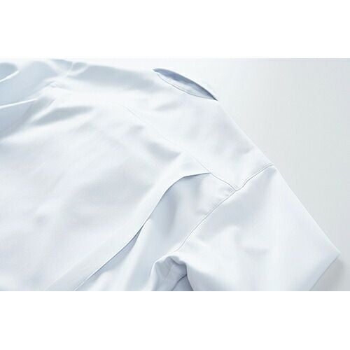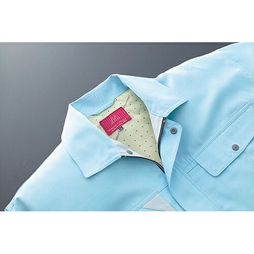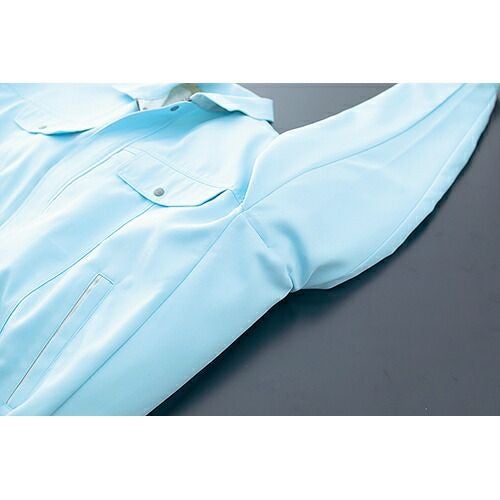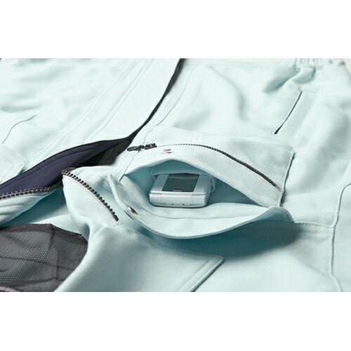 カラーはブルーを基調としており、作業着とは思えないほど非常にデザイン性の高い半袖シャツとなっています。左胸に異素材のファスナーポケットがついた、風合いのいいデニムニットの半袖Tシャツです。また、裾は絞れるようにドローコードが付いていますので、現場作業に応じて絞り込むことも可能です。