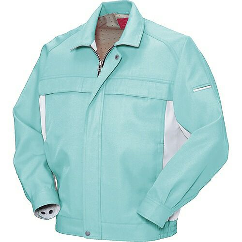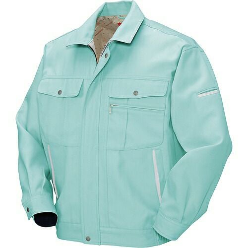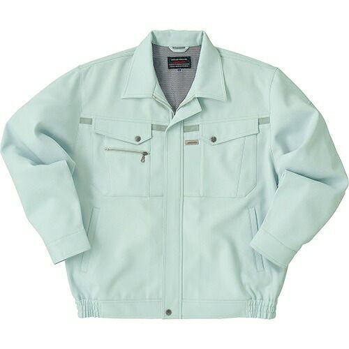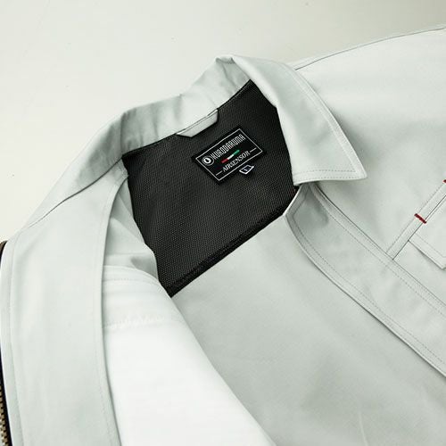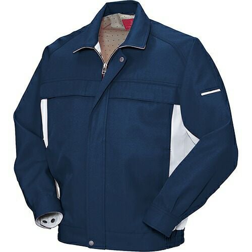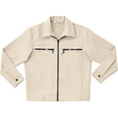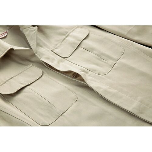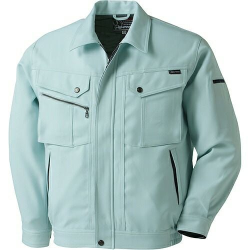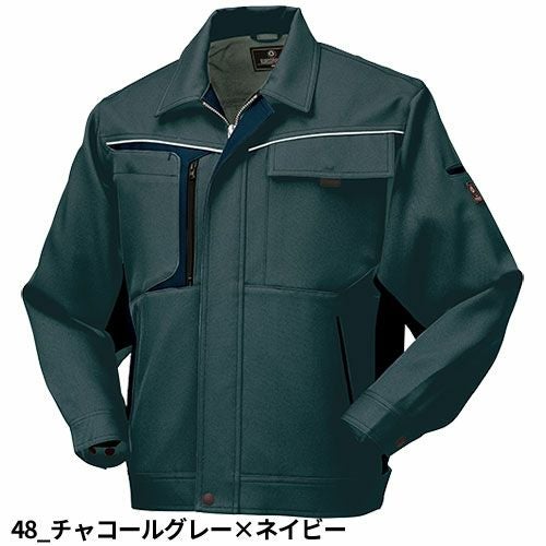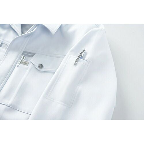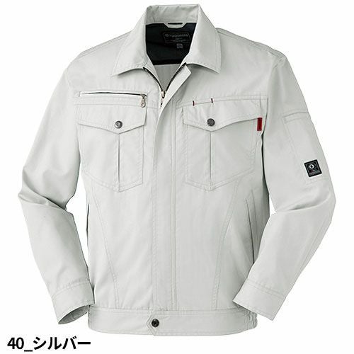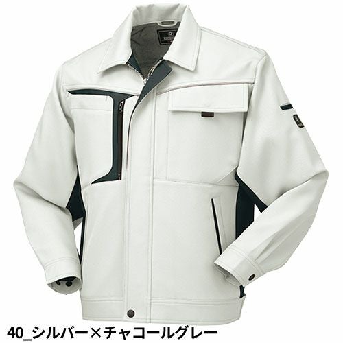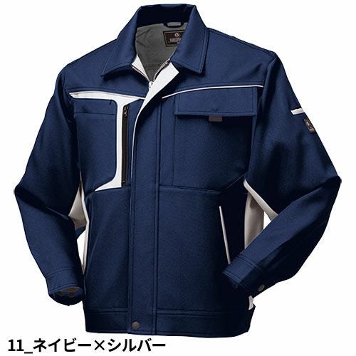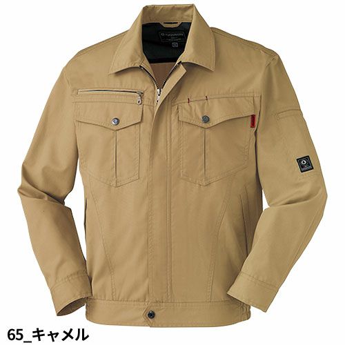 製品洗い加工を施した風合いのある超ストレッチデニムとなっています。伸縮性のあるストレッチ素材を使用しており、ジャンパーの袖内側・パンツの内股ギャザーで抜群の動き易さを実現していますので、激しい現場作業でも邪魔になりません。左袖にはマルチポケットがありますので、現場道具などを持ち歩くのにも大変便利となっています。