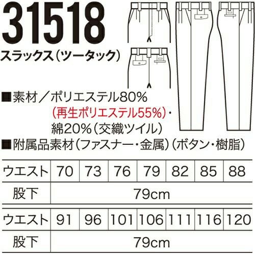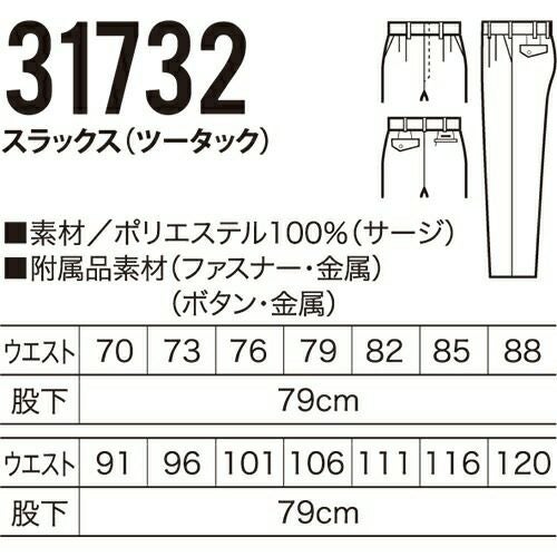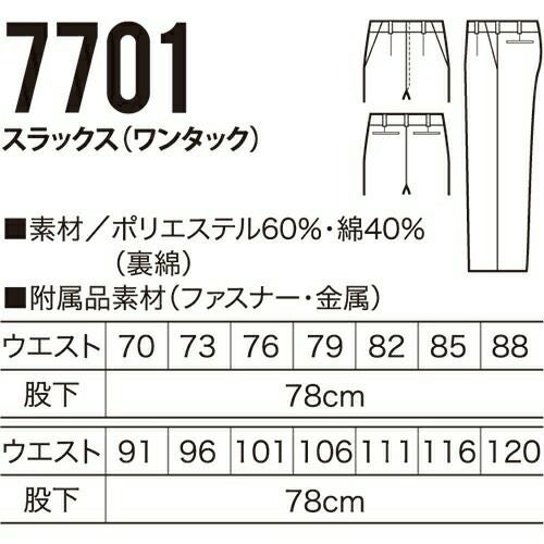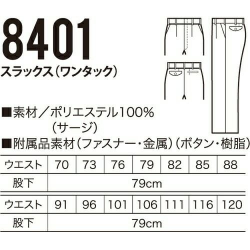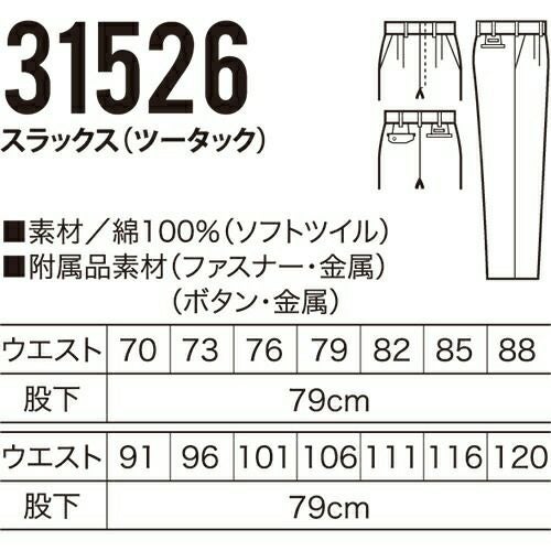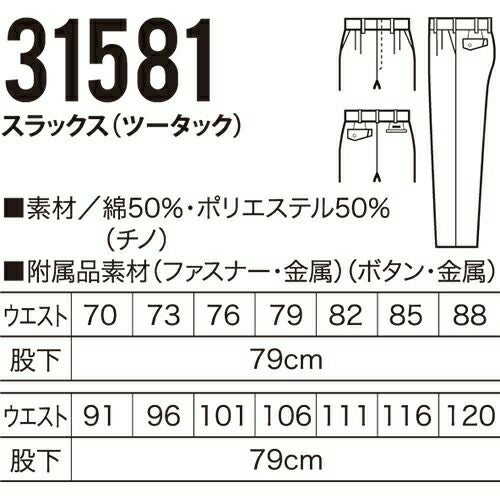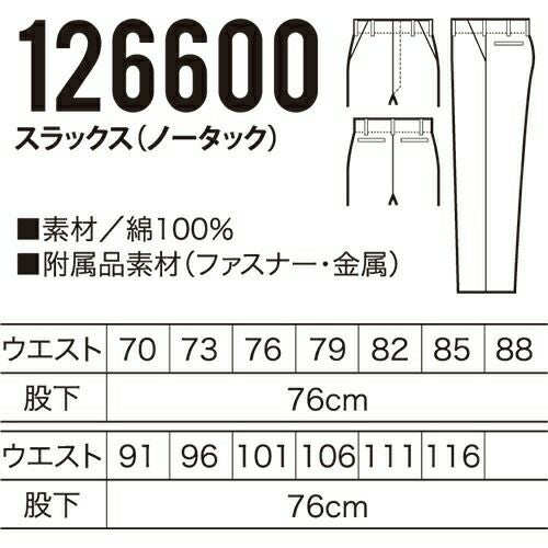 クロダルマ 126600 スラックス ノータック 作業着 ボトムス ワークウエア スラックス(ノータック) ワークウェア 作業服(秋冬・通年) パンツ・スラックス 腿ポケット無ズボン 作業服 作業 作業ズボン 作業パンツ ワークパンツ ズボン おしゃれ かっこいい オフィス ユニホーム 作業