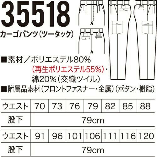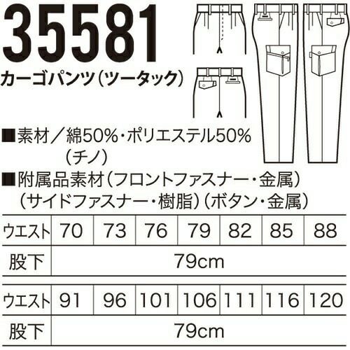 クロダルマ 35594 カーゴパンツ ノータック 作業着 ポケット付き ボトムス ワークウエア カーゴパンツ(ノータック) ワークウェア 作業服(秋冬・通年) パンツ・スラックス 腿ポケット有ズボン 作業服 おしゃれ かっこいい 人気 ズボン 作業ズボン 作業パンツ 作業 工事 土木 塗装 DIY diy