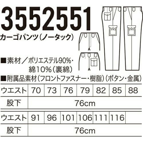 クロダルマ 3552551 カーゴパンツ ノータック 作業着 ポケット付き ボトムス ワークウエア カーゴパンツ(ノータック) ワークウェア 作業服(秋冬・通年) パンツ・スラックス 腿ポケット有ズボン 作業服 おしゃれ かっこいい 人気 ズボン 作業ズボン 作業パンツ 作業 工事 土木 塗装 DIY diy