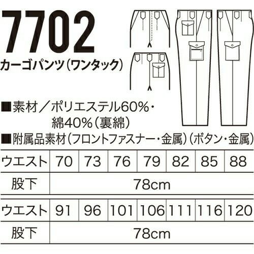 クロダルマ 7702 カーゴパンツ ワンタック 作業着 ポケット付き ボトムス ワークウエア カーゴパンツ(ワンタック) ワークウェア 作業服(秋冬・通年) パンツ・スラックス 腿ポケット有ズボン 作業服 作業 おしゃれ かっこいい 人気 ズボン 作業ズボン 作業パンツ 作業 工事 土木 塗装 DIY diy