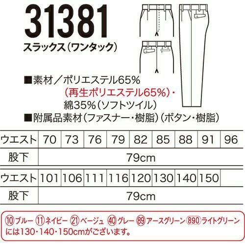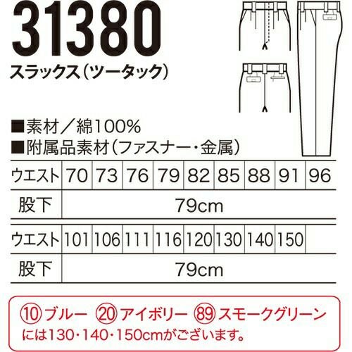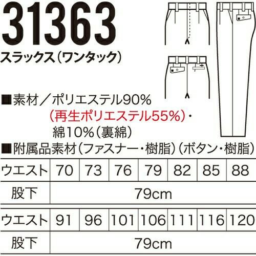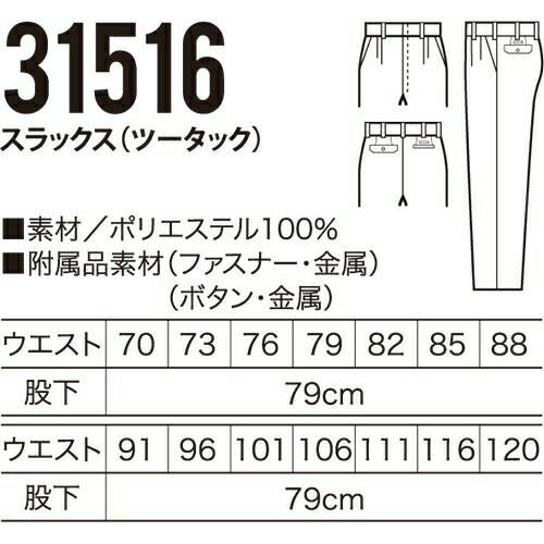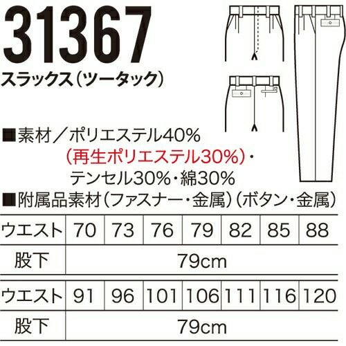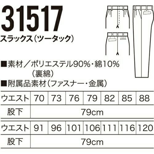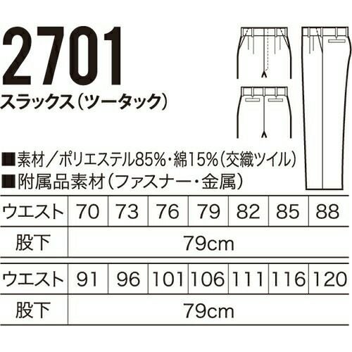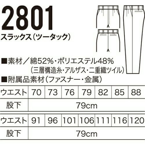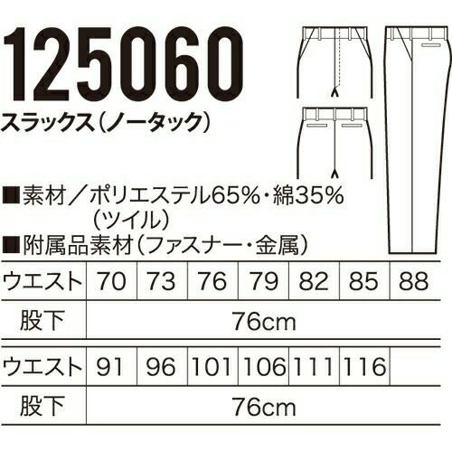 クロダルマ 125060 スラックス ノータック 作業着 ボトムス ワークウエア スラックス(ノータック) ワークウェア 作業服(秋冬・通年) パンツ・スラックス 腿ポケット無ズボン 作業服 作業 作業ズボン 作業パンツ ワークパンツ ズボン おしゃれ かっこいい オフィス ユニホーム 作業 軽作業