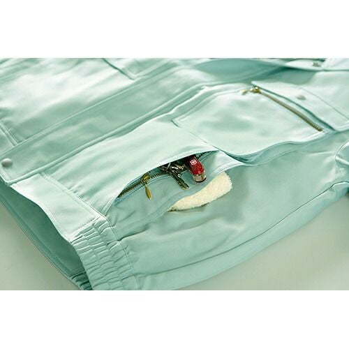 冬の厳しい風や雨から着る人を守る3層ボンディングとなっており、収縮性のあるストレッチ素材を採用しています。このストレッチジャンパーでは、背中の裾部分は反射プリントが貼りつけられているため、視認性を確保しづらい夜間作業時においても安全性を確保することができます。また、左袖にはペン差しがあるため筆記をする際に便利です。袖口ストレッチバインダーテープ・ハンドウォーマーポケット・裏地フリース素材など防寒対策も充実しています。