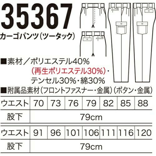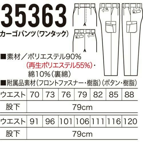 クロダルマ 35363 カーゴパンツ ワンタック 作業着 ポケット付き ボトムス ワークウエア カーゴパンツ(ワンタック) ワークウェア 作業服(秋冬・通年) パンツ・スラックス 腿ポケット有ズボン 作業服 おしゃれ かっこいい 人気 ズボン 作業ズボン 作業パンツ 作業 工事 土木 塗装 DIY diy