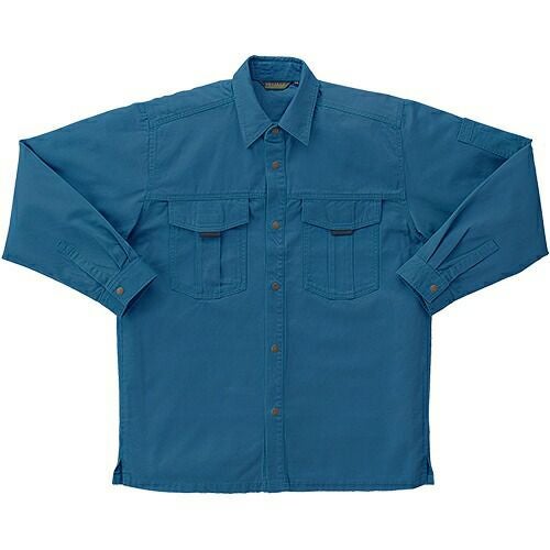 カラーはブルーを基調としており、作業着とは思えないほど非常にデザイン性の高い半袖シャツとなっています。左胸に異素材のファスナーポケットがついた、風合いのいいデニムニットの半袖Tシャツです。また、裾は絞れるようにドローコードが付いていますので、現場作業に応じて絞り込むことも可能です。