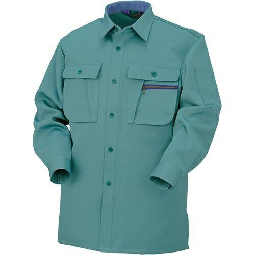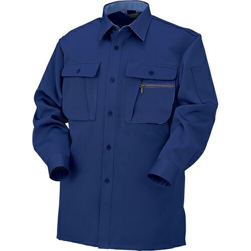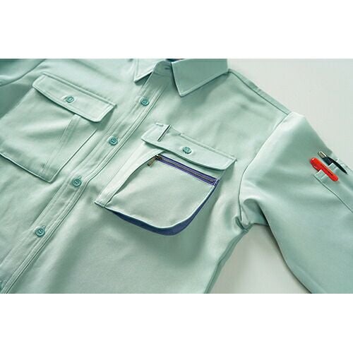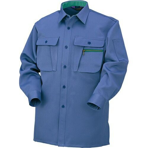 カラーはブルーを基調としており、作業着とは思えないほど非常にデザイン性の高い半袖シャツとなっています。左胸に異素材のファスナーポケットがついた、風合いのいいデニムニットの半袖Tシャツです。また、裾は絞れるようにドローコードが付いていますので、現場作業に応じて絞り込むことも可能です。