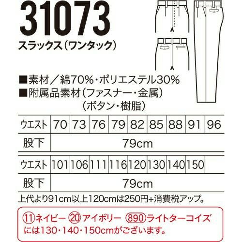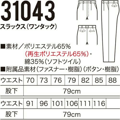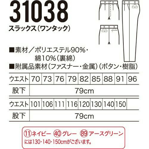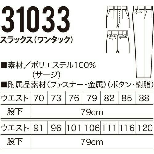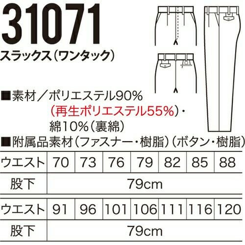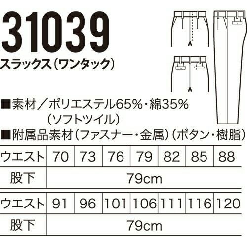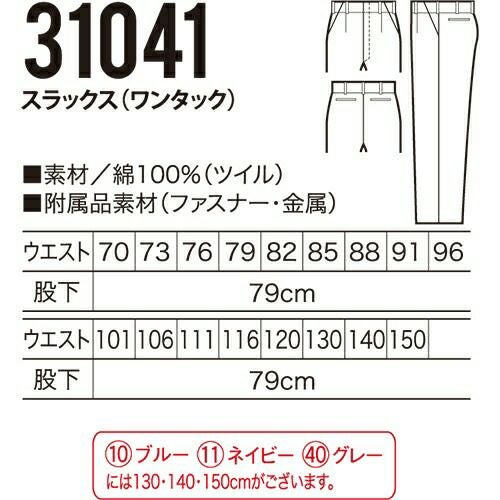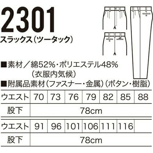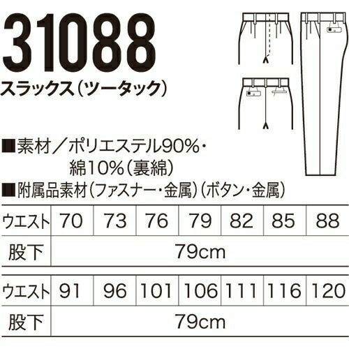 クロダルマ 31088 スラックス(ツータック) 裏綿 作業着 ボトムス ワークウエア ワークウェア 作業服(秋冬・通年) パンツ・スラックス 腿ポケット無ズボン 作業服 作業ズボン 作業パンツ ワークパンツ ズボン おしゃれ かっこいい オフィス ユニホーム 作業 軽作業 外作業 工場 現場