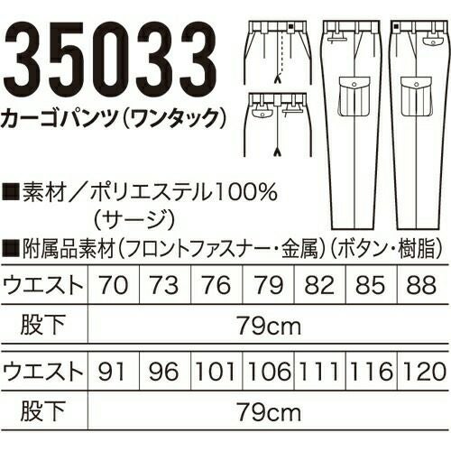 クロダルマ 35033 カーゴパンツ ワンタック 作業着 ポケット付き ボトムス ワークウエア カーゴパンツ(ワンタック) ワークウェア 作業服(秋冬・通年) パンツ・スラックス 腿ポケット有ズボン 作業服 おしゃれ かっこいい 人気 ズボン 作業ズボン 作業パンツ 作業 工事 土木 塗装 DIY diy